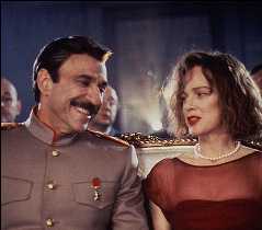 Stalin (played tongue firmly in cheek by F. Murray Abraham) sloppily seduces her -- her complacency is due entirely to politics -- impregnates her, and drops dead in the act. All this is played like a deadpan Monty Python skit, with Stalin's lieutenants hardly able to control their glee at the news of his passing.