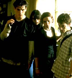 The cast: Elijah Wood ("Deep Impact") as Anthony Michael Hall, the class nerd who suspects the truth but can't convince anyone. Teenage soap opera veteran Jordana Brewster as Molly Ringwald, the superficial head cheerleader who is Wood's friend when the cool people aren't looking. John Hartnett ("Halloween: H20") as Judd Nelson, the smarter-than-he-seems druggie who figures out the dope he deals makes the aliens dissolve like salt on slugs. Shawn Hatosy ("In & Out") as Emilio Estevez, star quarterback who by quitting the team to focus on academics avoids becoming one of the first student aliens (the parasites start with the popular kids). And finally newcomer Clea Duvall as Ally Sheedy, the acidic outcast in heavy eye-liner who changes into spring fashions and washes her face in the last act so she can kiss the football star.