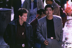 The first act of the movie mostly by-the-book gangland cop stuff, featuring Hong Kong action king Chow Yun-Fat ("The Replacement Killers") as a hard-boiled (naturally) NYPD detective working the gang beat in Chinatown who reluctantly takes on Mark Wahlberg ("Boogie Nights") as his inexperienced and laughably idealistic new partner.
